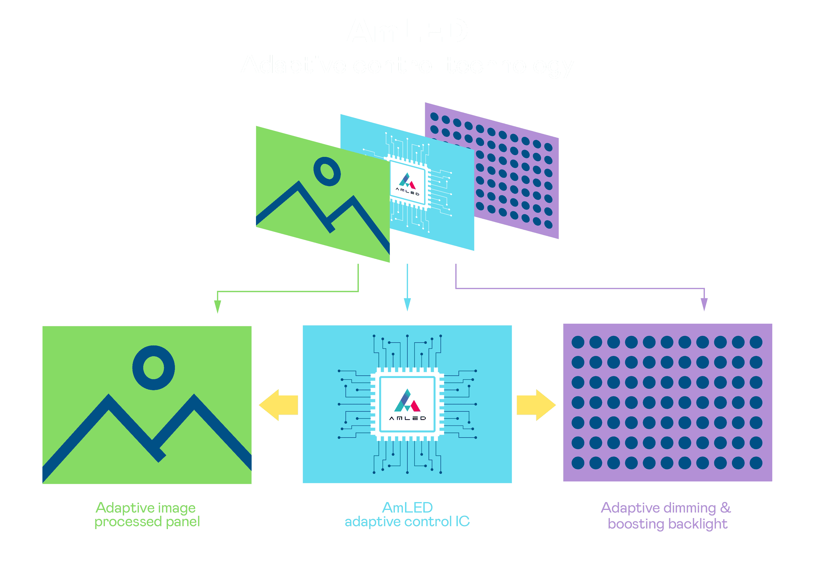 AmLED 具备更省电与低蓝光特性。。。与一般的 LED 背光显示技术相比,,,由于 AmLED 常时处于局部调光状态,,,其功耗仅有前者的 50% 左右,,,同时 AmLED 还具备低蓝光特性,,,,满足长时间使用的护眼需求。。