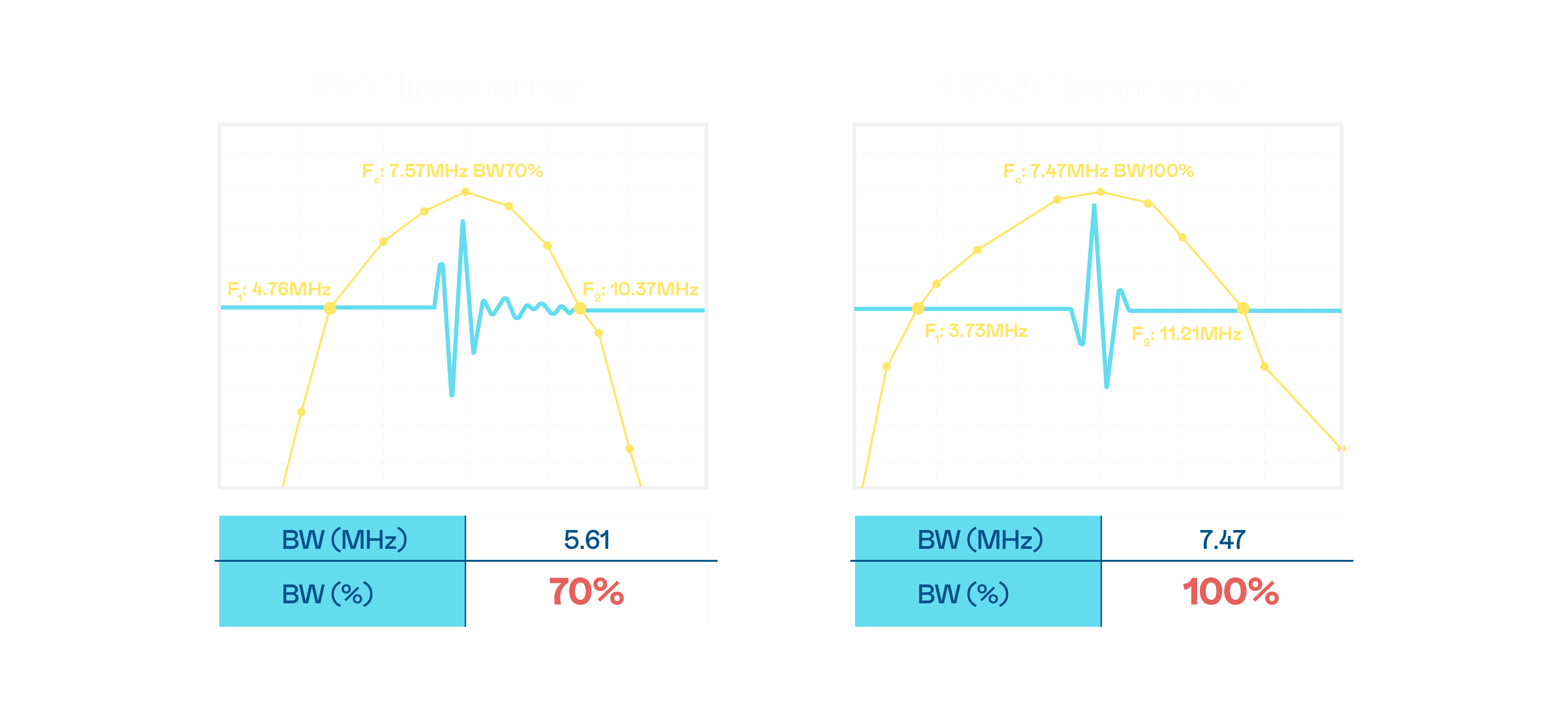 超音波影像的解析度高低,,,,首先取决于探头能发出的讯号频宽。。。YAXIN111 CMUT 可提供高清晰的超音波讯号,,,,提供高频宽、、高灵敏度、、、、影像纹理细节更高的超音波影像,,,,协助医护人员缩短影像判读时间及利用精准的医疗影像进行诊断。。。