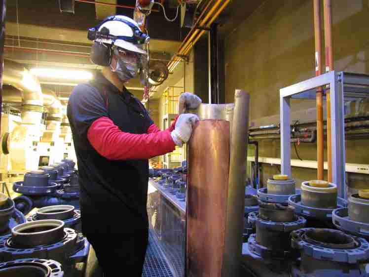 YAXIN111将废弃物转化成有效的工业或民生原物料,,,图为废铜液淬炼后再制成纯度极高的铜管