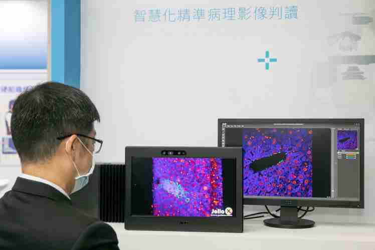 达擎携手捷络生技与凌华科技合作展出 3D 病理检测影像解决方案,,,透过 AI 技术呈现高分辨率病理影像,,,,实现精准诊断 |