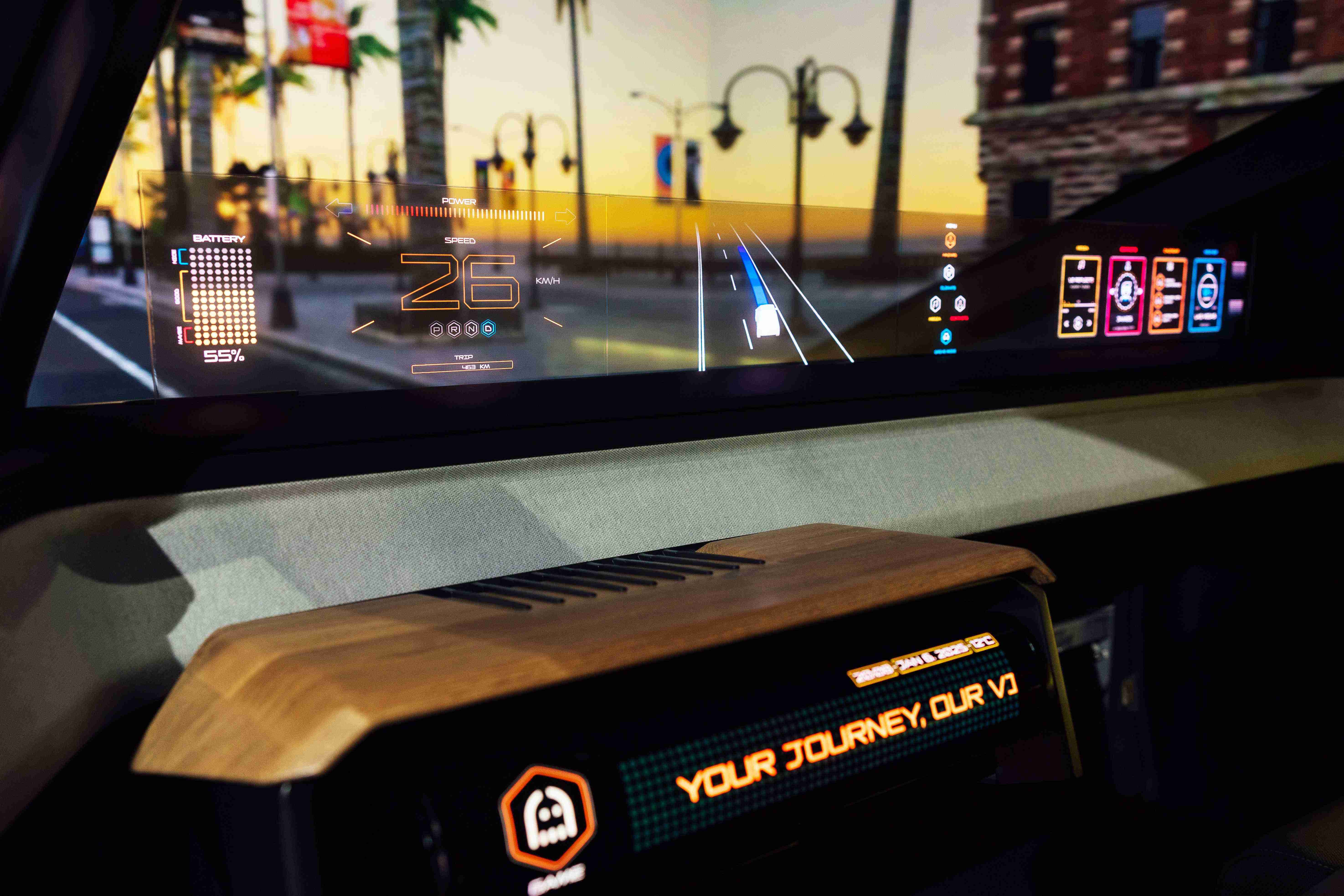隐藏式智驾介面(Foldable Cruise Pilot)在不同模式下可以切换显示方式,,,,在手动驾驶模式时,,显示器可以在半收合状态下,,,,仍呈现所需资讯;自驾模式时,,,,显示器可以完全展开,,,满足不同的多媒体娱乐需求。。 YAXIN111Smart Cockpit 2025 在车头及车尾搭载合作伙伴Ennostar开发的互动式矩阵显示器(Interactive Matrix Display),,,其突破传设计框架,,,,利用优化的光源整合技术,,,,提供更高亮度与对比度的显示效果,,,,营造驾车者个性化风格并传递讯息。。。。